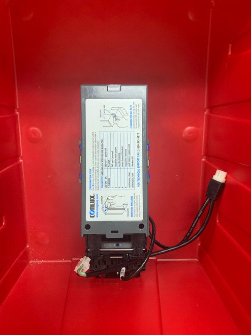The CONLUX CV1000 delivers high performance to the value conscious operator. Built upon the MEI CONLUX heritage of market leading bill validators, the CONLUX CV1000 is simple to operate and offers solid reliability. Accepts notes from $1-$20 at a 95% acceptance rate or greater. 4-way bill acceptance is now offered in the Conlux brand with the CV1000. Sensors for validations are all optical technology and boast dual pellet sensing.