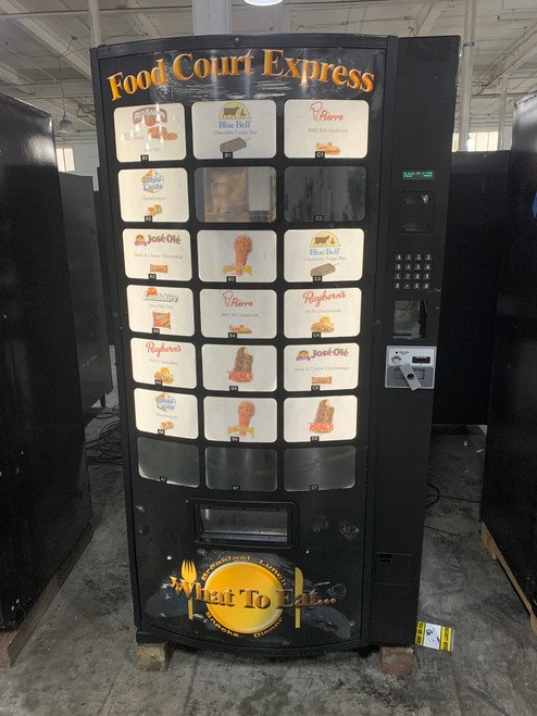 Great Frozen Entree / Frozen Snack Vendor featuring eye-catching back-lit food graphics, back-lit product card display system and a cool service window that treats customers to a “robotic show” as the Z-400 retrieves and dispenses the customers selection.